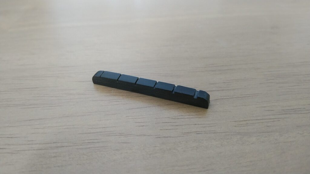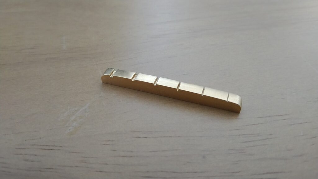 このようなギターのナット交換は、ブランク材を削り出して製作するしかありません。
