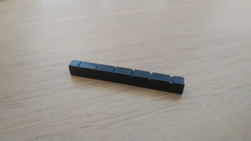 その後、ヤスリで幅をそろえ溝を切り、高さをそろえていきます。