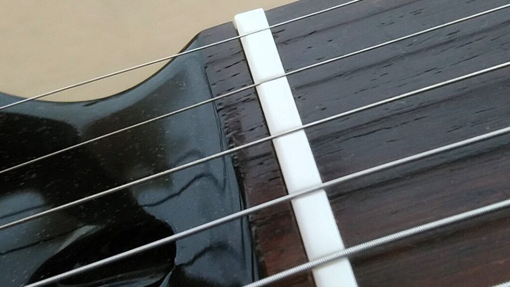 素材は何であれ、このプラ製ナットを交換するとギターの印象がガラッと変わるため、
